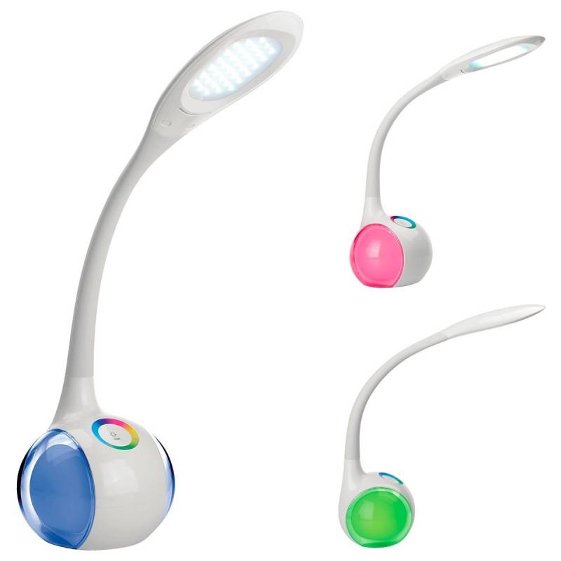 Flexo blanco 5w led, encendido táctil con varias instensidades y laterales en RGB.