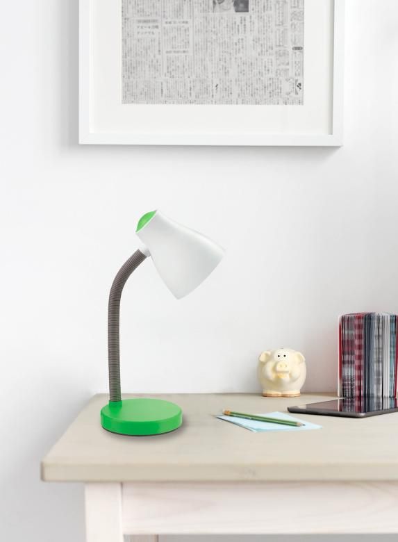 Flexo de sobremesa E27 articulable,disponible en rosa,verde naranja,amarillo,azul y negro.Bombilla no incluida.Max.25w,se recomienda la utilizacion de bombilla led.